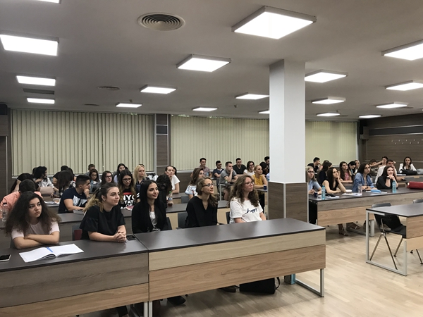 罗马尼亚大学学生聆听主旨演讲 访问期间,慕晓博士还分别与蒂米什瓦拉西部大学法学院院长Prof. Lucian Bercea教授和教师Alin Speriusi-Vlad进行了座谈,就双方进一步加强专业领域的合作以及两国知识产权研究状况等问题进行了深入的探讨。